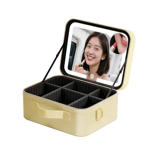 Travel Makeup Bag with LED Mirror,Travel Makeup Organizer,Makeup Case with Lighted 3 Color Setting,Waterproof Makeup Box with 5X Magnifying Mirror,Adjustable Dividers