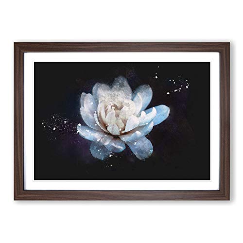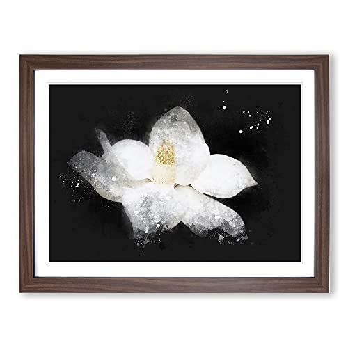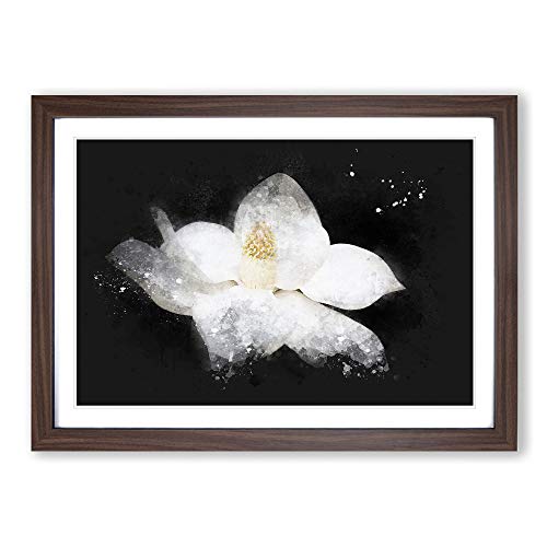 Blooming White Magnolia Paint Splash Modern Art Framed Wall Art Print, Ready to Hang Picture for Living Room Bedroom Home Office Décor, Walnut A4 (34 x 25 cm)