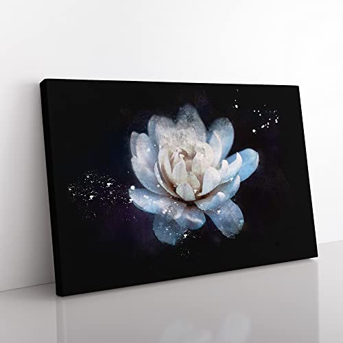 Blue Magnolia Flower Paint Splash Canvas Print for Living Room Bedroom Home Office Décor, Wall Art Picture Ready to Hang, 30 x 20 Inch (76 x 50 cm)