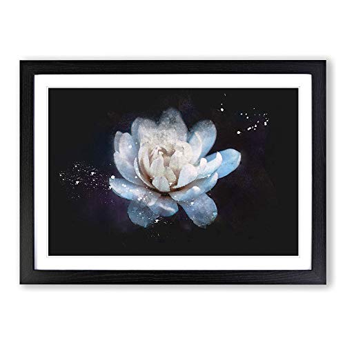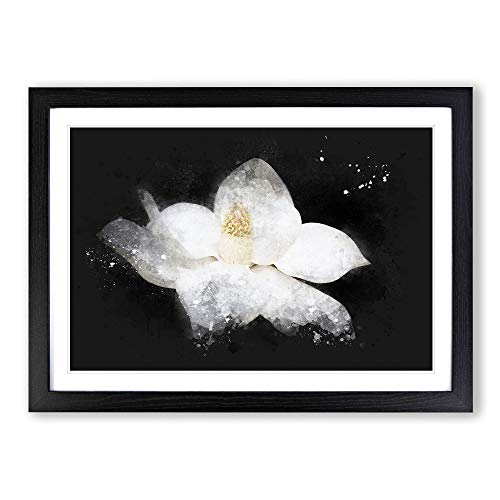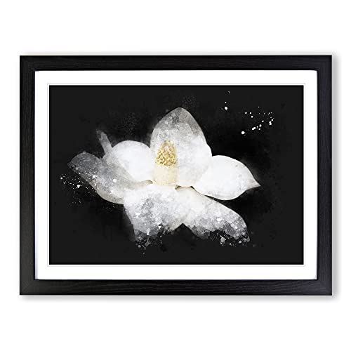 Blooming White Magnolia Paint Splash Modern Art Framed Wall Art Print, Ready to Hang Picture for Living Room Bedroom Home Office Décor, Black A4 (34 x 25 cm)