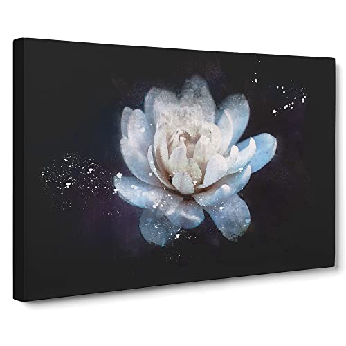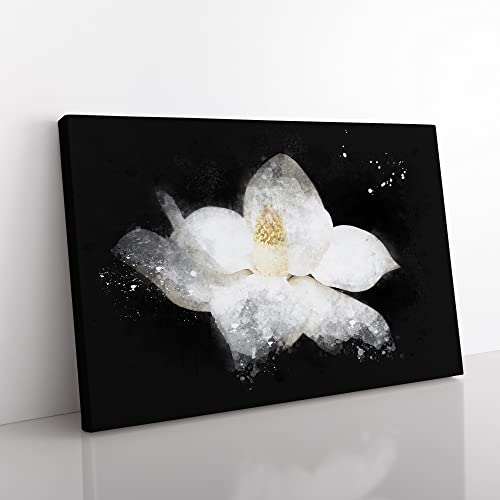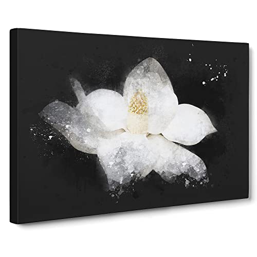 Blooming White Magnolia Paint Splash Modern Art Canvas Wall Art Print Ready to Hang, Framed Picture for Living Room Bedroom Home Office Décor, 76x50 cm (30x20 Inch)