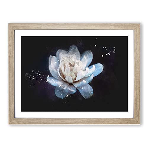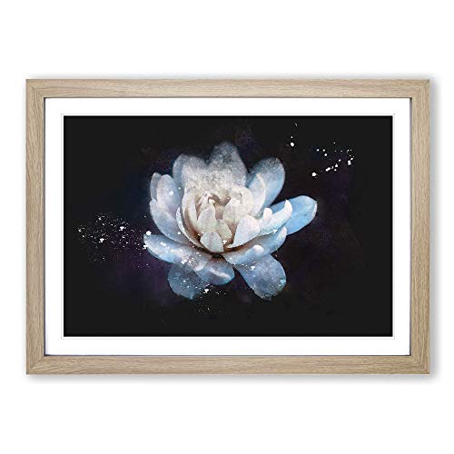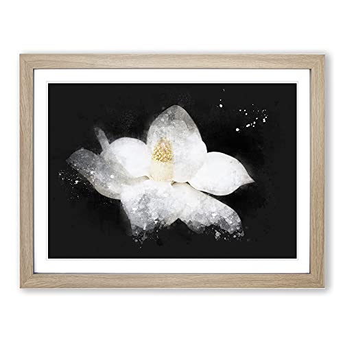 Blooming White Magnolia Paint Splash Modern Art Framed Wall Art Print, Ready to Hang Picture for Living Room Bedroom Home Office Décor, Oak A4 (34 x 25 cm)