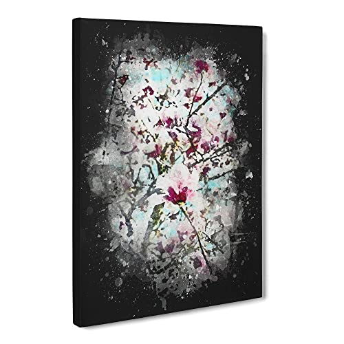 Pink Magnolia Blossom Tree Paint Splash Canvas Print for Living Room Bedroom Home Office Décor, Wall Art Picture Ready to Hang, 30 x 20 Inch (76 x 50 cm)