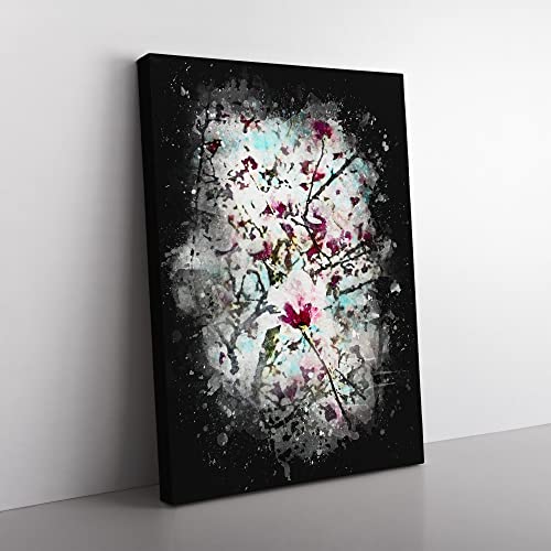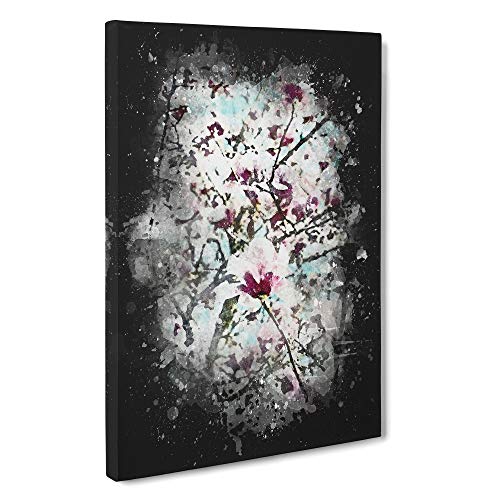 Big Box Art Pink Magnolia Blossom Tree Paint Splash Canvas Wall Art Print Ready to Hang Picture, 76 x 50 cm (30 x 20 Inch), White, Grey, Black, Mauve, Maroon