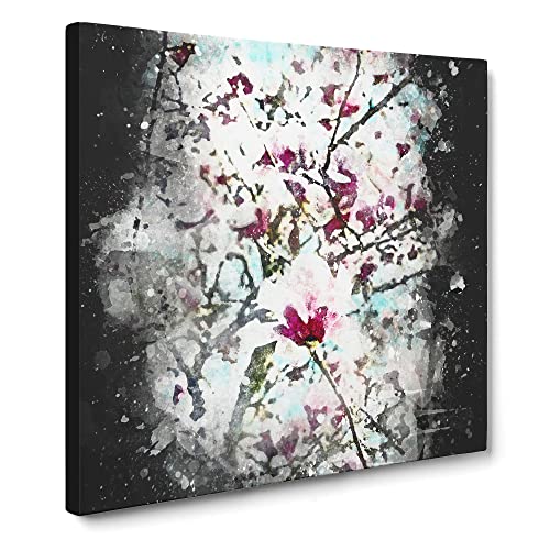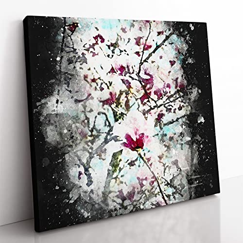Pink Magnolia Blossom Tree Paint Splash Modern Canvas Wall Art Print Ready to Hang, Framed Picture for Living Room Bedroom Home Office Décor, 20x20 Inch (50x50 cm)