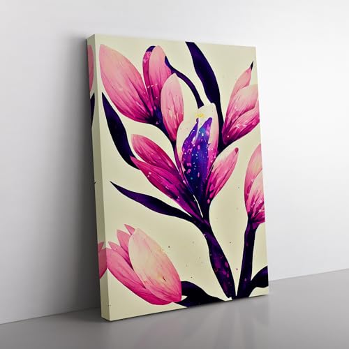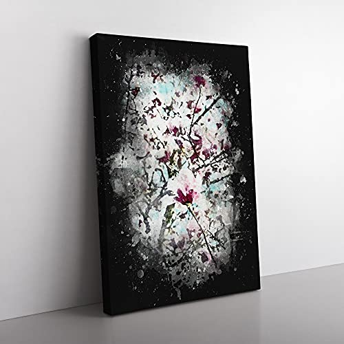 Pink Magnolia Blossom Tree Paint Splash Modern Canvas Wall Art Print Ready to Hang, Framed Picture for Living Room Bedroom Home Office Décor, 30x20 Inch (76x50 cm)
