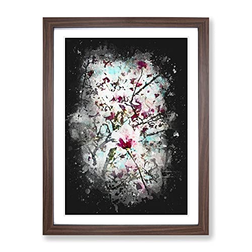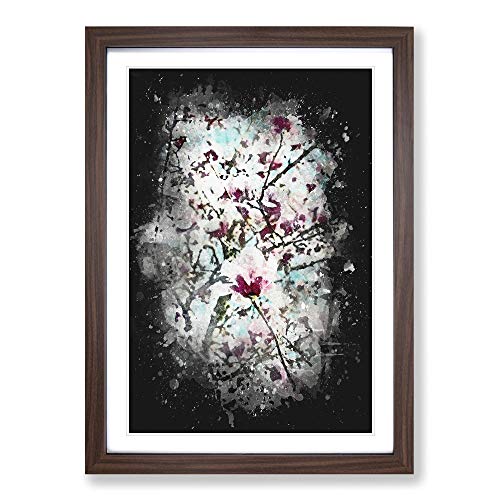Pink Magnolia Blossom Tree Paint Splash Modern Framed Wall Art Print, Ready to Hang Picture for Living Room Bedroom Home Office Décor, Walnut A4 (34 x 25 cm)