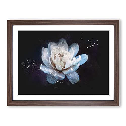 Blue Magnolia Flower Paint Splash Modern Art Framed Wall Art Print, Ready to Hang Picture for Living Room Bedroom Home Office Décor, Walnut A4 (34 x 25 cm)