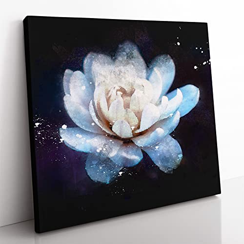 Blue Magnolia Flower Paint Splash Modern Canvas Wall Art Print Ready to Hang, Framed Picture for Living Room Bedroom Home Office Décor, 50x50 cm (20x20 Inch)