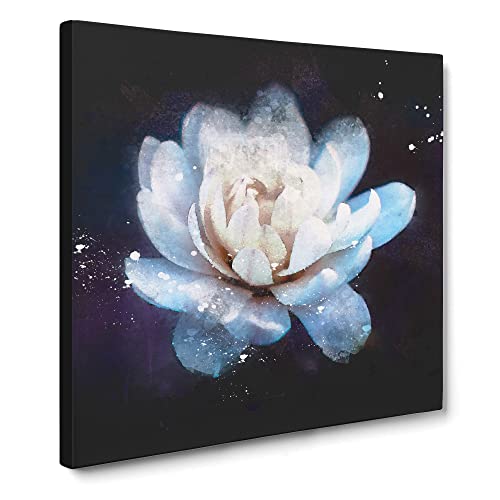 Blue Magnolia Flower Paint Splash Modern Canvas Wall Art Print Ready to Hang, Framed Picture for Living Room Bedroom Home Office Décor, 20x20 Inch (50x50 cm)