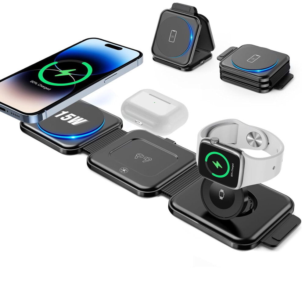 3in1 Foldable travel mag-safe charger, OneCut wireless charging station for iPhone 17/16/15/14/13/12 Series, Apple Watch Charger for iWatch 10/9/Ultra 2/Ultra/8/7/6/SE/5/4/AirPods 4/3/2/Pro