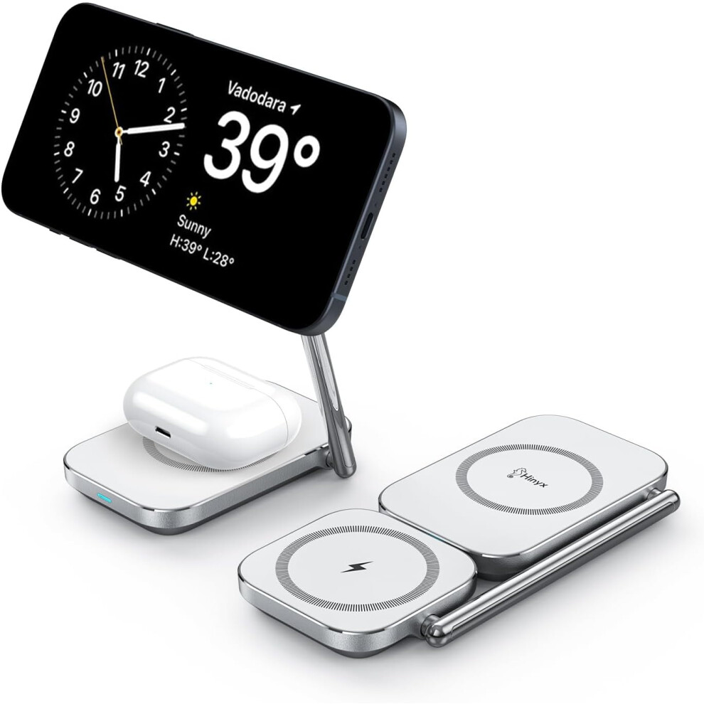 Chronus 3 in 1 MagSafe Charger, Wireless Charger, Dual Ring, iWatch, AirPods, 15W Output, Double-Sided Charging, Stand Function, iPhone