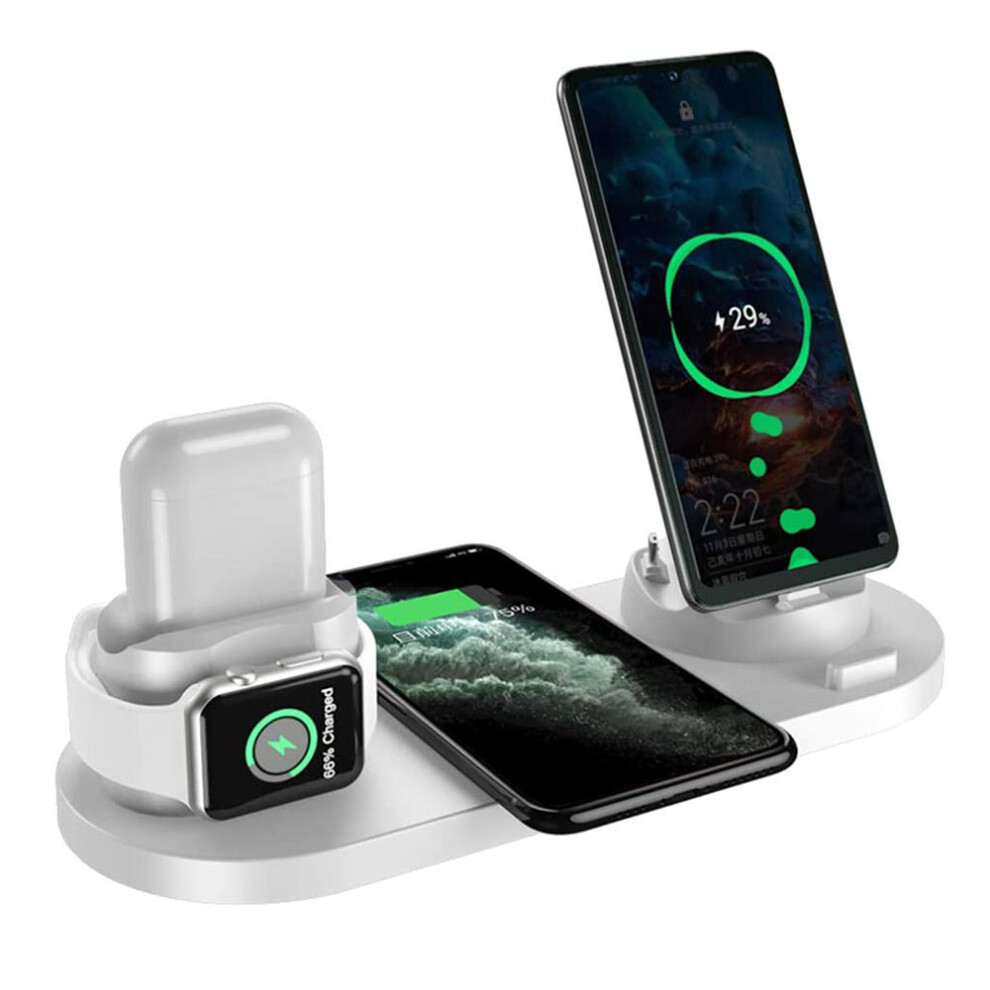 Wireless Charging Station, 6 in 1 MagSafe Charger Stand for Multiple Devices Including iPhone, iPad, Samsung, LG, HTC, Huawei, Sony, Supports Qi Wirel