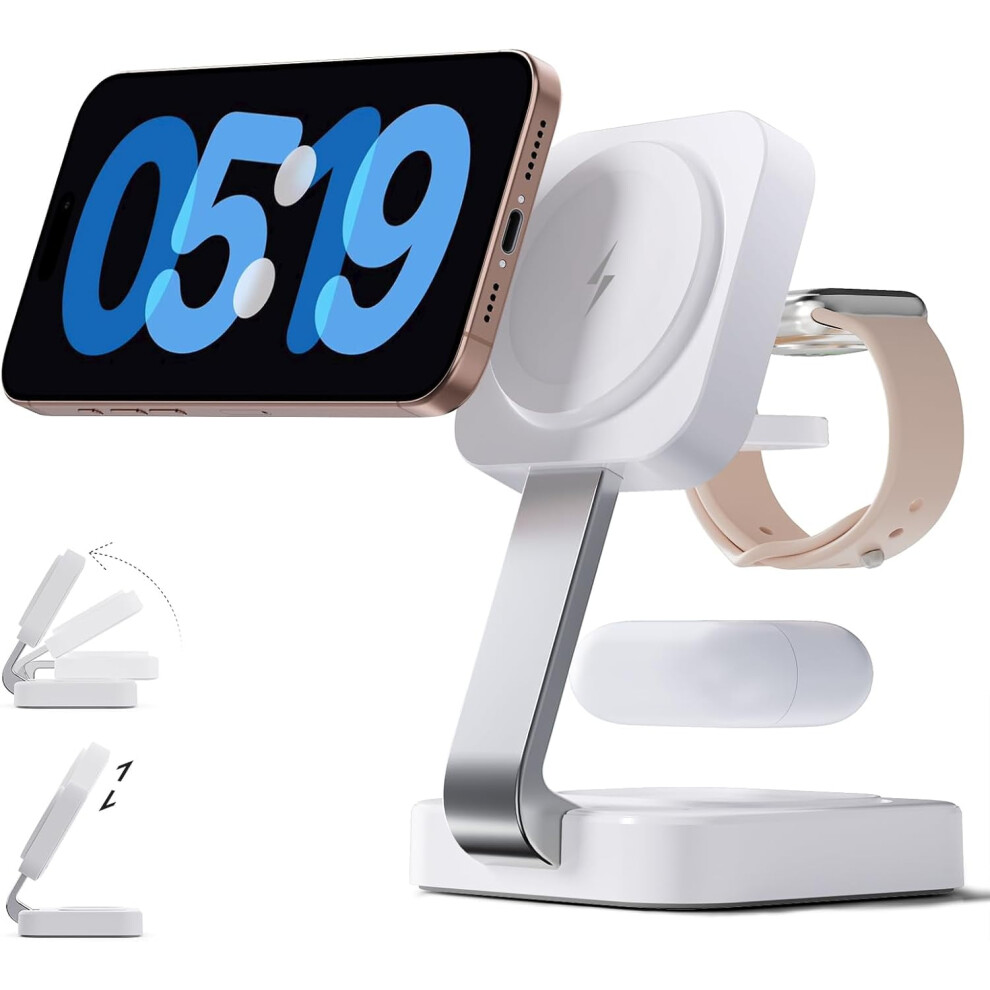 Chronus 3 in 1Mag-Safe Charger Stand, Magnetic Wireless Charging Station for Apple MagSafe for iPhone 15,14,13,12 Pro Max,iWatch Series,AirPods(White)