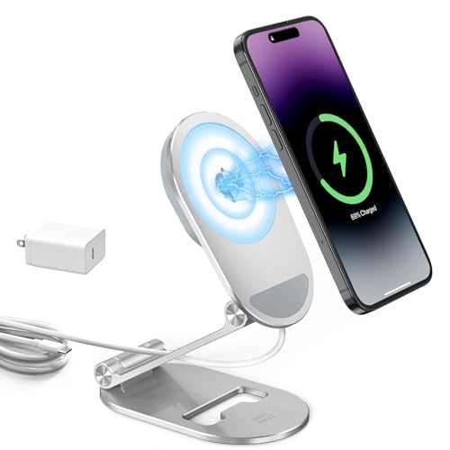 Magnetic Wireless Charger, Minthouz Foldable MagSafe Charging Stand, Adjustable Aluminum Phone Holder with 20W USB-C Fast Charger Included, for iPhone 17 16 15 14 13 12 Series, AirPods 3/Pro 2/Pro