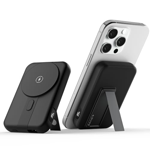 decqle 001 Magnetic Wireless Power Bank 10000mAh Foldable Stand Battery Pack Portable Charger Compatible with MagSafe for iPhone 12/13/14/15 Series 2024 (Black)002