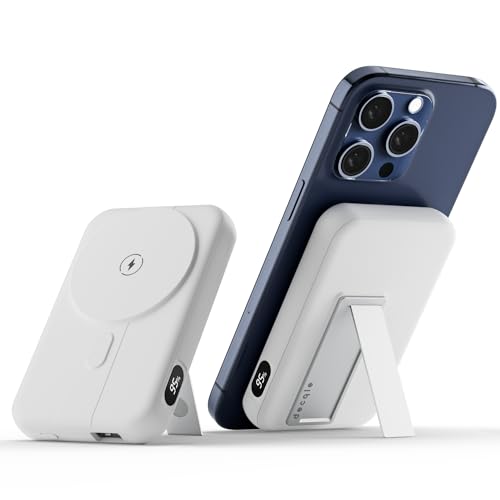 decqle 001 Magnetic Wireless Power Bank 10000mAh Foldable Stand Battery Pack Portable Charger Compatible with MagSafe for 12/13/14/15 Series 2024 (off white)002