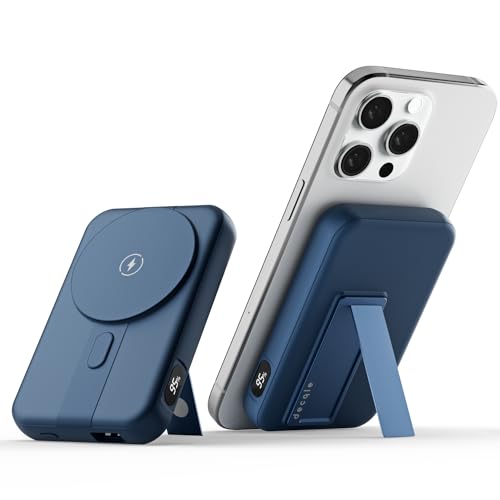 decqle 001 Magnetic Wireless Power Bank 10000mAh Foldable Stand Battery Pack Portable Charger Compatible with MagSafe for iPhone 12/13/14/15 Series 2024 (navy blue)002