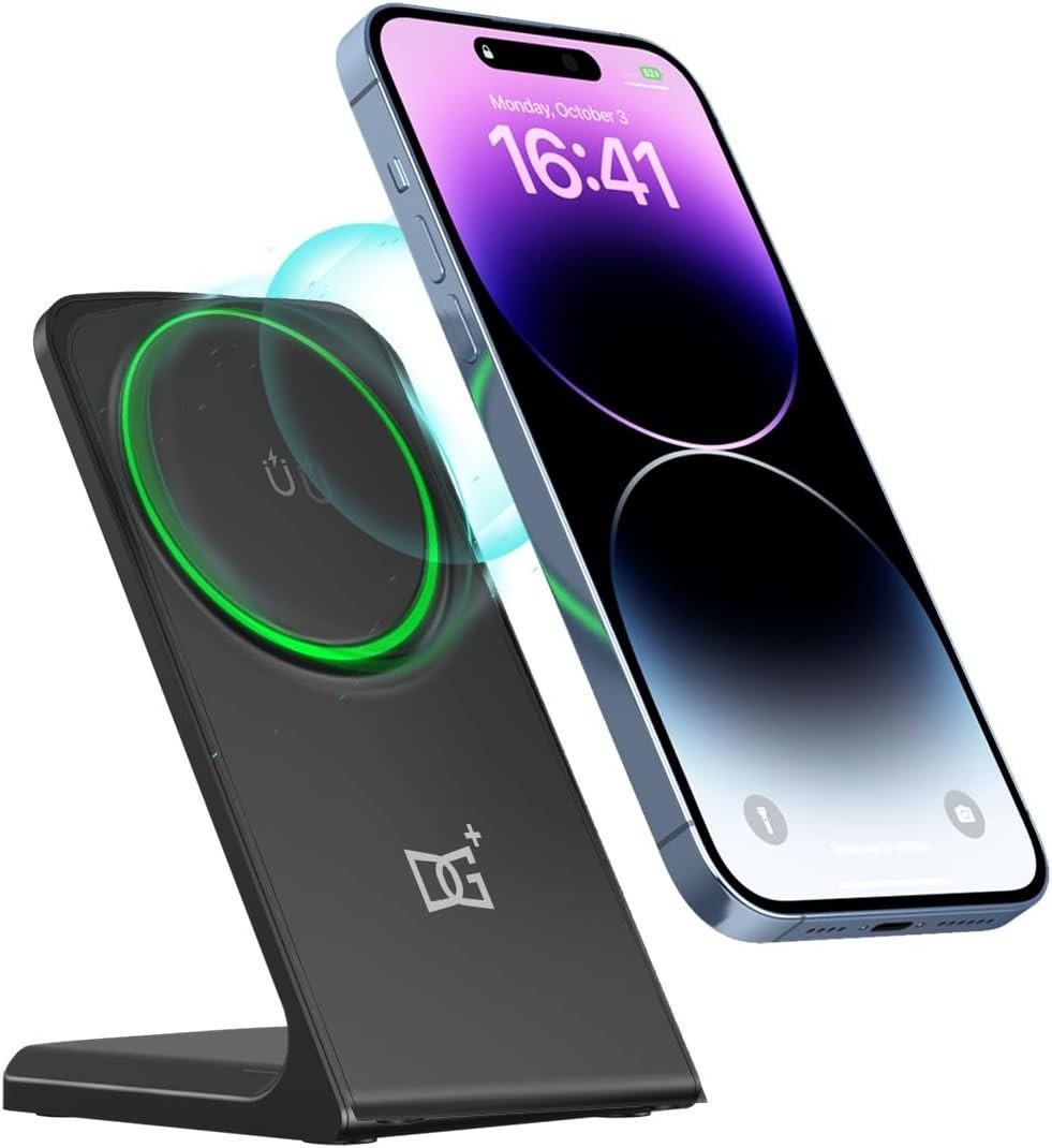 DGPLUS with MagSafe Charger Stand 15W Magnetic Wireless Charging Dock for iPhone 17 Pro Max iPhone Air/16/15/14/13/12 Series & Google Pixel 10 9 Fast Qi Charging Station (One)
