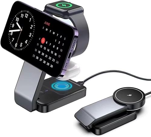 Wireless Charger,Magsafe 3 in 1 Wireless Charging Station,Aluminum Alloy Magnetic Wireless Charger for Apple Watch 10/9/8/7/6/5/4/3,Airpods Pro/3/2,Fast Magsafe Charger Stand for iPhone 17/16/15/14/13