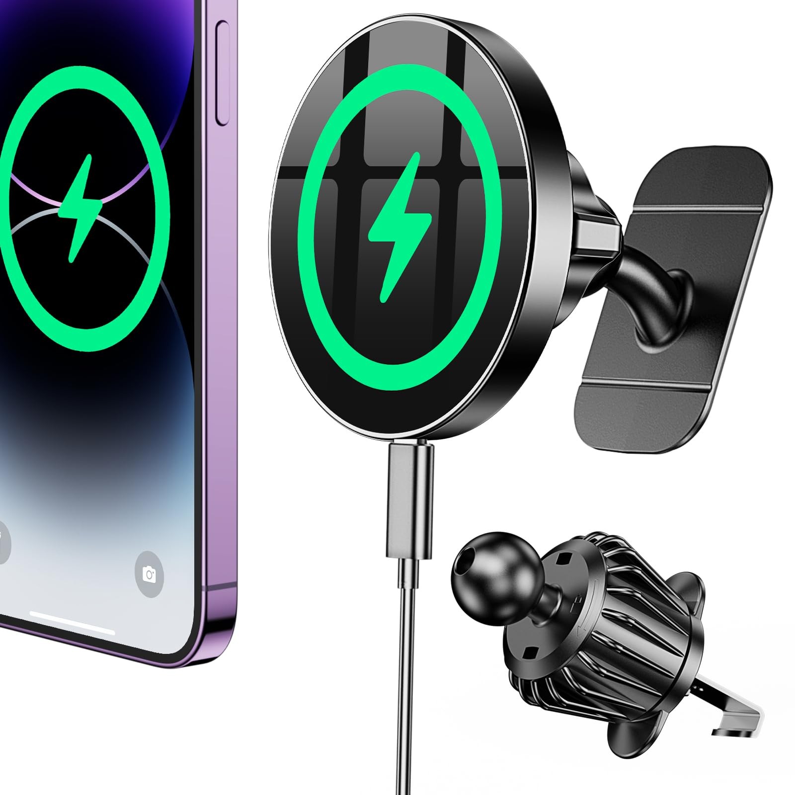 MOKPR for Magsafe Car Mount Charger, 15W Magnetic Wireless Car Charger, Air Vent/Dashboard for Magsafe Phone Holder Fits iPhone 16/15/14/13/12
