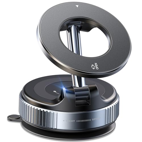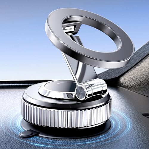 MOGU Car Phone Holder Vacuum Magnetic Mobile Phone Holder for Cars, 360° Adjustable & Foldable Magsafe Car Mount for Dashboard/Windscreen, Strong Magnet Suction Cup Cradle for iPhone 17-12 Seris