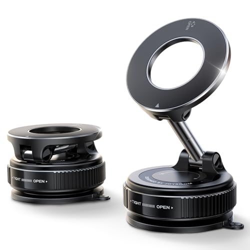 CloudValley Suction Magnetic Phone Holder, [360° Rotating] Adjustable and Foldable Magsafe Car Mount with Suction, Vacuum Magnetic Phone Stand for iPhone 17/16/15/14/13/12 Pro Max, Black