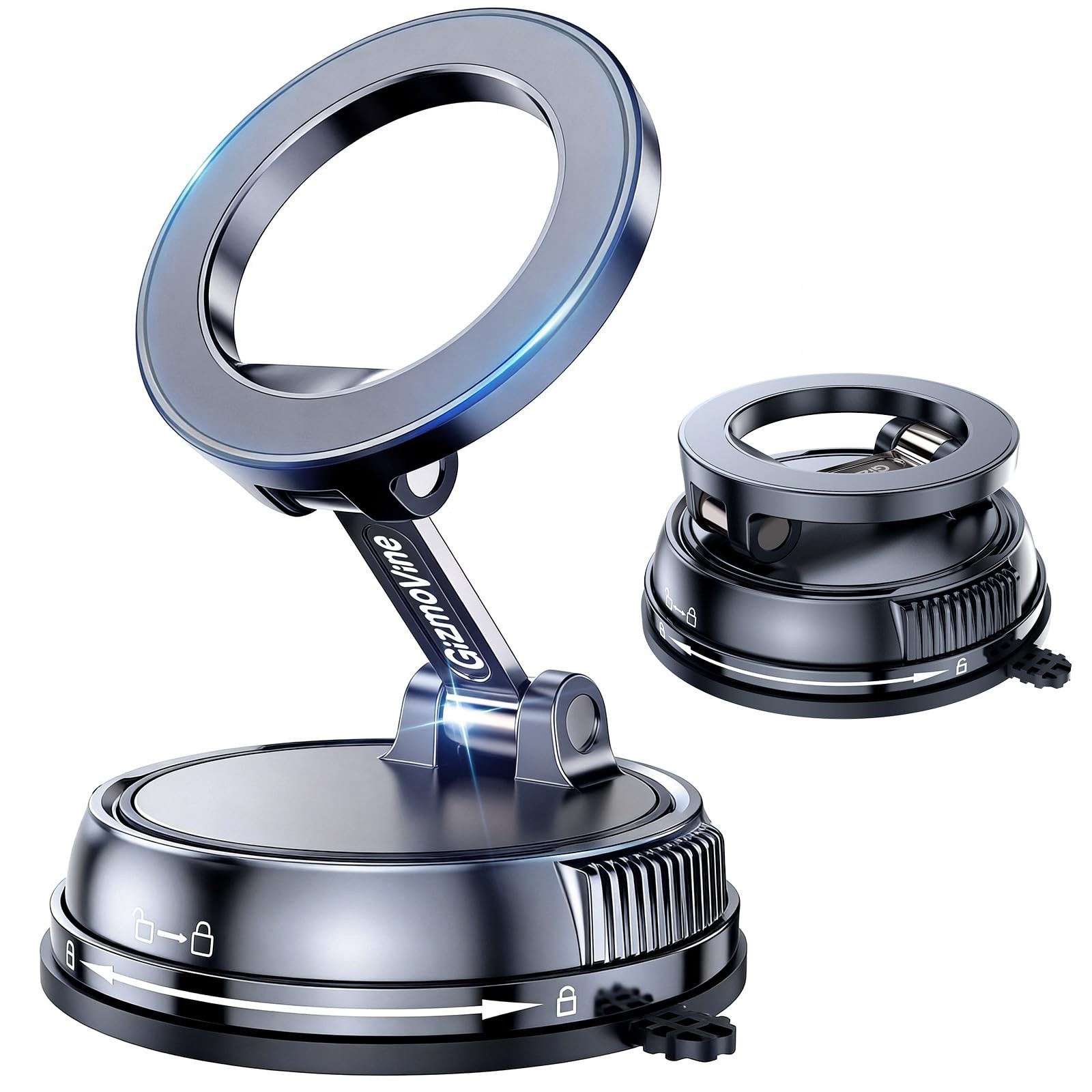 Vacuum Magnetic Cars Phone Holder 2-in 1 for All Phones, [N55 Magnets & Nano+Vac. Suction] for Magsafe Car Mount Dashboard Windscreen, 360° Rotatable| Foldable for iPhone 17 16 15 14 13 Samsung Pixel
