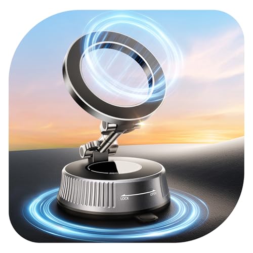MRGLAS 2026 Upgraded Vacuum Magnetic Mobile Phone Holder Car for Magsafe Car Mount, Suction Cup Phone Holder [17KG Suction Power & 24*N55 Magnet], 360° Rotatable, for iPhone 17 Pro Max 16