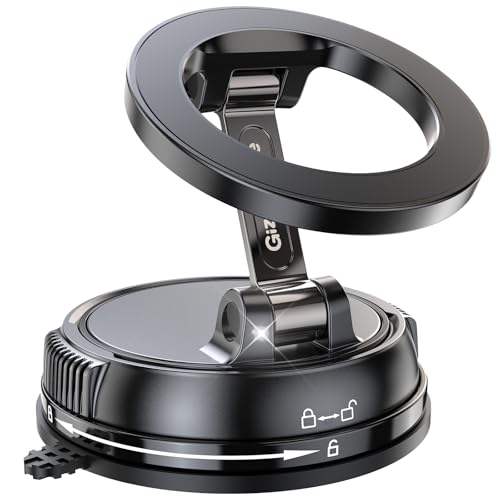 MRGLAS 2025 Upgraded Vacuum Magnetic Mobile Phone Holder Car for Magsafe Car Mount, Suction Cup Mobile Phone Holder [89+LBS Suction Power & 2800gf Strongest Magnet], 360° Rotatable for Mirror/Gym