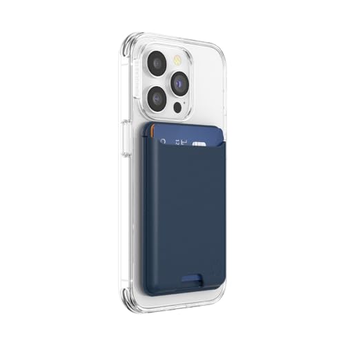 PopSockets Phone Wallet with Expanding Grip and Adapter Ring for MagSafe, Phone Card Holder, Wireless Charging Compatible, Wallet Compatible with MagSafe - Navy Blue