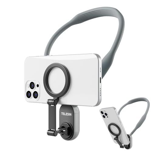 TaoAcc Magnetic Neck Mount for POV Vlog iPhone Android Phones - Magsafe Neck Phone Holder (Grey)