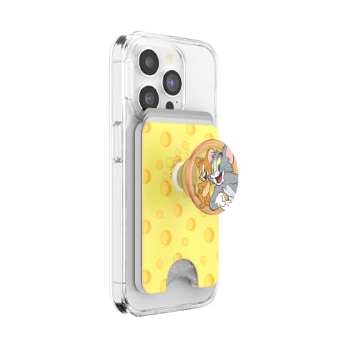 PopSockets Phone Wallet with Expanding Grip and Adapter Ring for MagSafe, Phone Card Holder, Wireless Charging Compatible, Wallet Compatible with MagSafe, Disney - Cheese'd Tom & Jerry