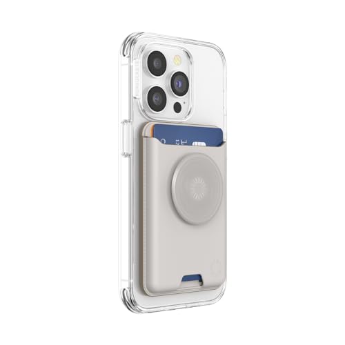PopSockets Phone Wallet with Expanding Grip and Adapter Ring for MagSafe, Phone Card Holder, Wireless Charging Compatible, Wallet Compatible with MagSafe - Blanc Fresh