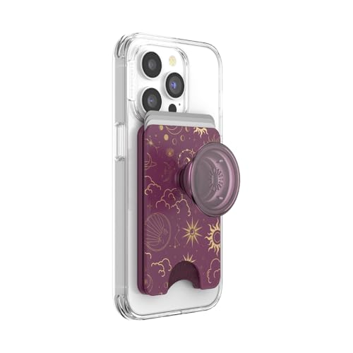 PopSockets Phone Wallet with Expanding Grip and Adapter Ring for MagSafe, Phone Card Holder, Wireless Charging Compatible, Wallet Compatible with MagSafe - Celestial Mauve