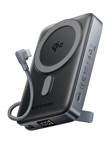 VENTION Qi2 Certified 15W Magnetic Wireless Power Bank 10000mAh, PD 35W Fast Charging Portable Charger with Foldable Stand, LED Display, Battery Pack MagSafe Compatible with iPhone 17-12 Series
