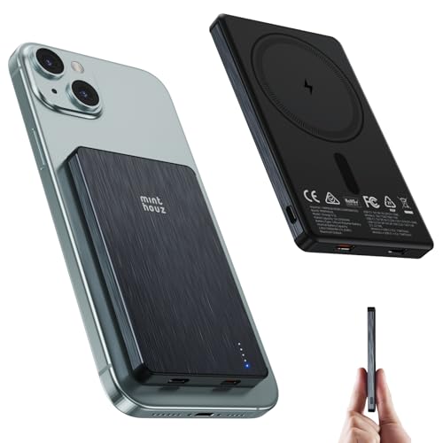 Minthouz Magnetic Power Bank, 5000mAh Battery Pack with 22.5W USB-C, 15W Ultra-Fast Wireless Charging MagSafe Compatible Portable Charger for iPhone 17/16/15/14/13/12 Series, Black