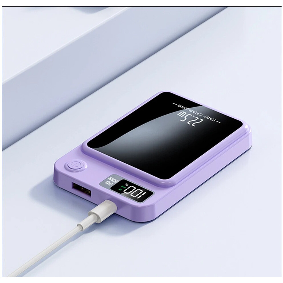 Groov-e Power Bank 5000mAh Portable Magnetic Wireless Charger - Lilac - Fast Charging, Recharges Smartphones Up to 2 Full Times, USB-C Input and Output, Compatible with MagSafe