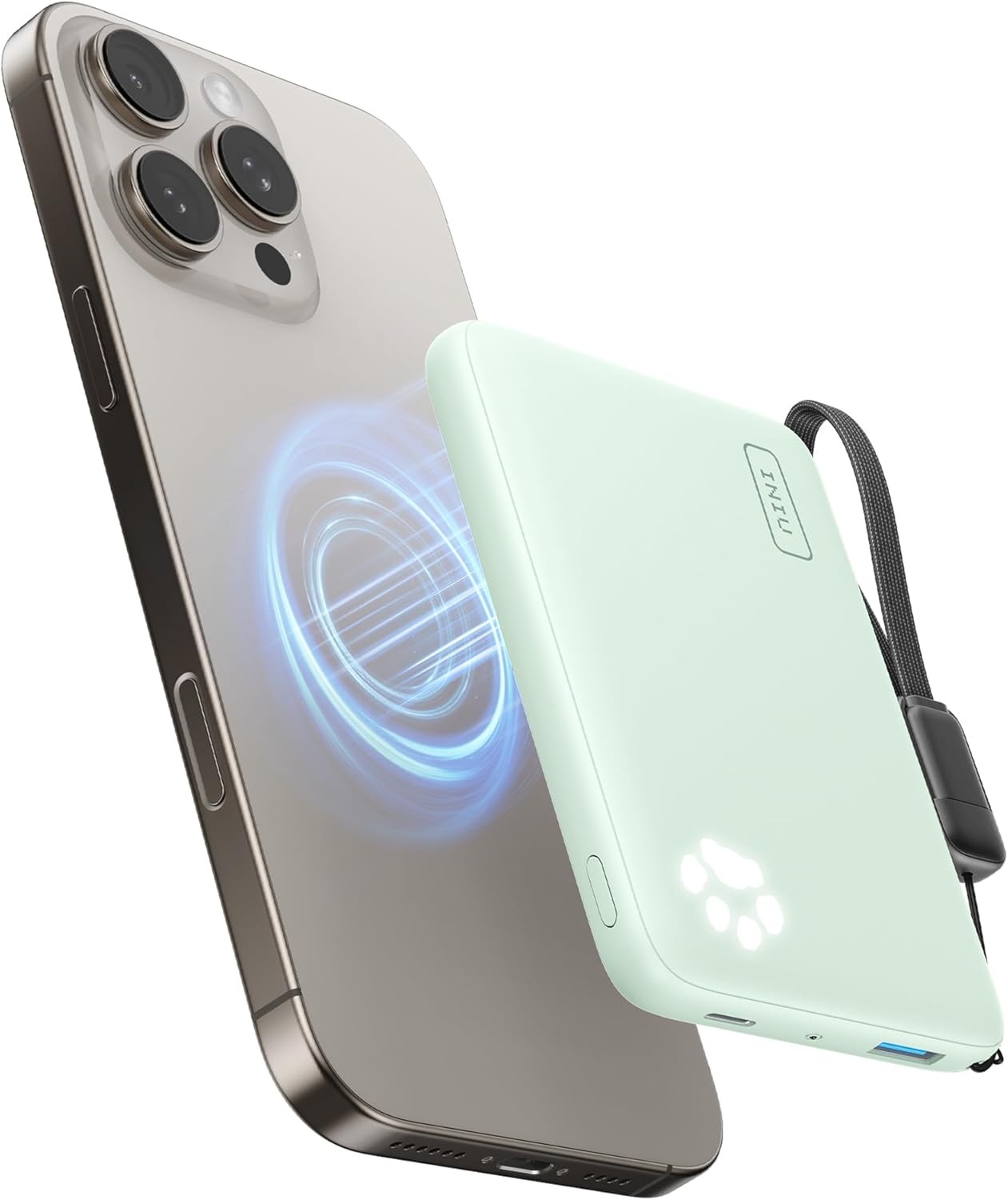INIU for MagSafe Power Bank, Qi2 Certified, 5000mAh 20W Ultra Slim Portable Charger, Fast Charging Battery Pack with USB C Cable & Stand, Magnetic Power Bank for iPhone 16 15 14 13 12 Series Only