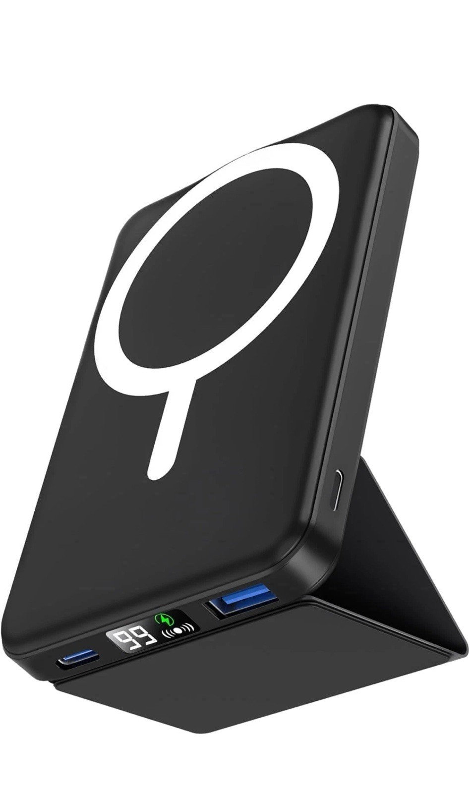 Mag-safe Power Bank, Azmuth 10000mAh Magnetic Battery Pack 22.5W PD Fast Charging with USB-C Cable LED Wireless Portable Charger with Stand for iPhone 16/15/14/13/12/Pro (Black)
