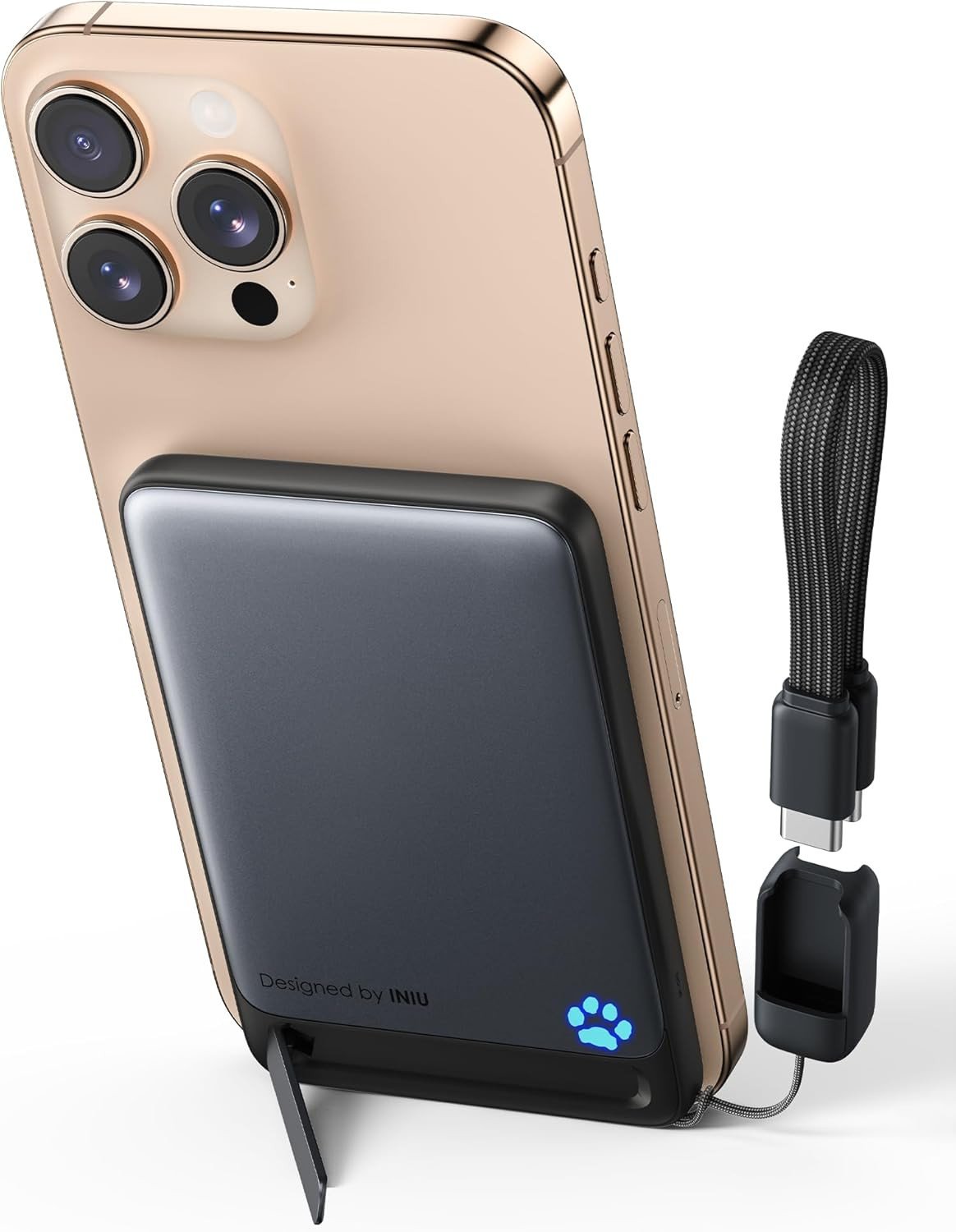 INIU for Magsafe Power Bank, Ultra Slim 5000mAh Qi2 Certified 15W Magnetic Portable Charger, Travel Wireless Battery Pack with USB C Cable & Stand for iPhone Air 17 16 15 14 13 12 Only