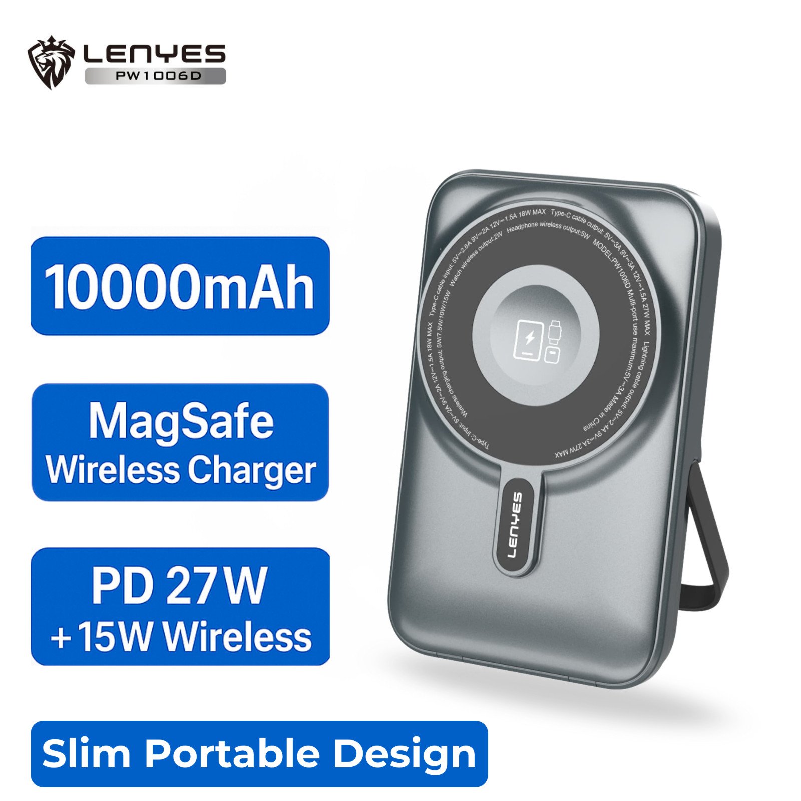 Lenyes 10000mAh MagSafe Power Bank 27W PD Fast Charger iPhone 12-16 Samsung S25