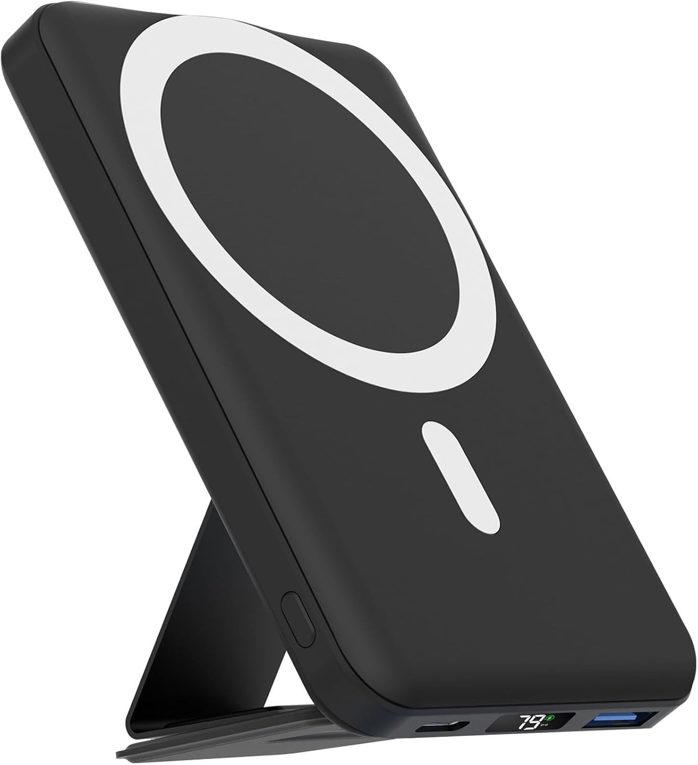 ESR for MagSafe Power Bank, Kickstand 5,000mAh MagSafe Portable Charger 0.6 in, Qi2 Certified 15W Ultra-Fast Battery Pack, 20W USB-C MagSlim Charger with Cable for iPhone 17/16/15/14/13/12, Black