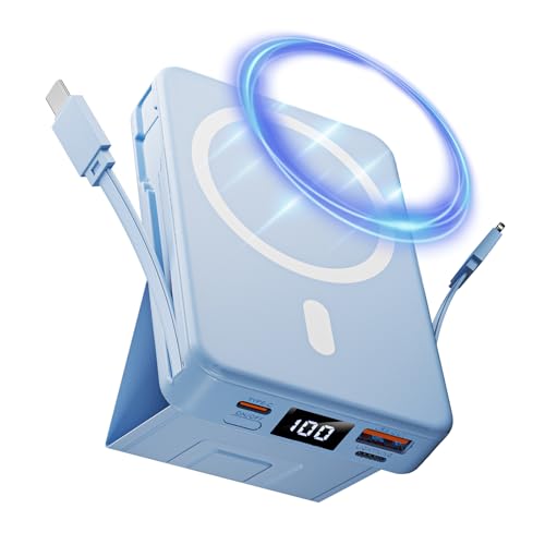 CROWATTS Mag-safe Power Bank, 10000mAh Wireless Power Bank, PD 22.5W Fast Charging Battery Pack with USB-C, LED Display Magnetic Battery Pack with Stand for iPhone 16/15/14/13/12 Pro (Blue)