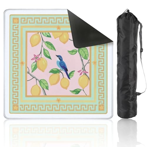 DERUINVAIO Mahjong Mat 80x80cm Blue Bird Lemon Tree Pink Flowers Greek Key Border Mah Jong Set Game Table Cloth Noise Reduction Non-Slip Portable Table Cover for Card Poker Board Tiles Games