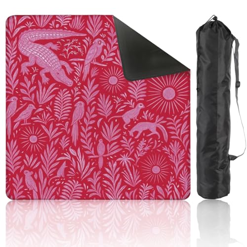 DERUINVAIO Mahjong Mat 80x80cm Pink Alligator Birds Monkeys Red Jungle Mah Jong Set Game Table Cloth Noise Reduction Non-Slip Portable Table Cover for Card Poker Board Tiles Games