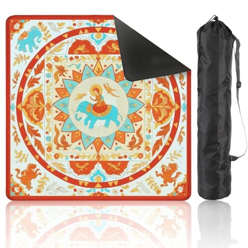 Mahjong Mat 80x80cm Spiritual Elephant Rider Mandala Art Ornate Floral Animal Mah Jong Set Game Table Cloth Noise Reduction Non-Slip Portable Table Cover for Card Poker Board Tiles Games