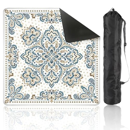 Mahjong Mat 80x80cm Blue Brown Vintage Paisley Mandala Design Mah Jong Set Game Table Cloth Noise Reduction Non-Slip Portable Table Cover for Card Poker Board Tiles Games