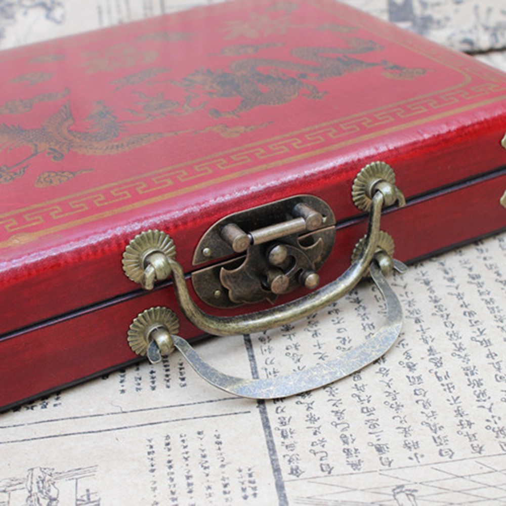 OSALADI Vintage Leather Mahjong Storage Box Case 24-Number Size, Portable Handheld Mahjong Container for Travel and Dormitory Organization, Mah-Jong Set Holder without Tiles