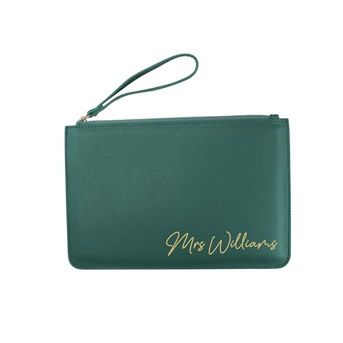 eBuyGB Personalised Bride Bridesmaid Clutch Bag, PU Leather, Bridal Party Gift, Maid of Honour Present, Bridesmaids Proposal Gifts, Wedding Accessory (Eucalyptus)